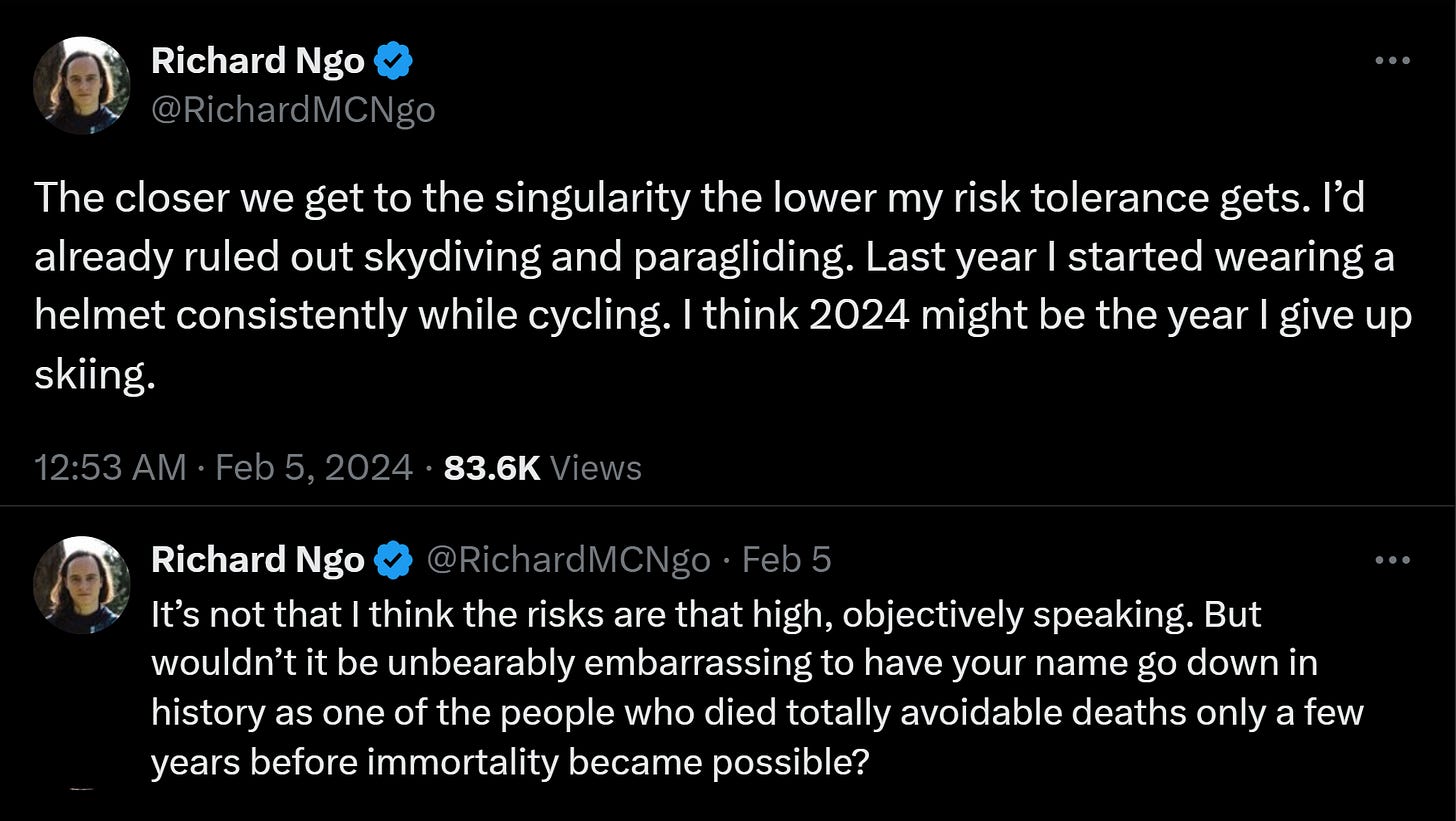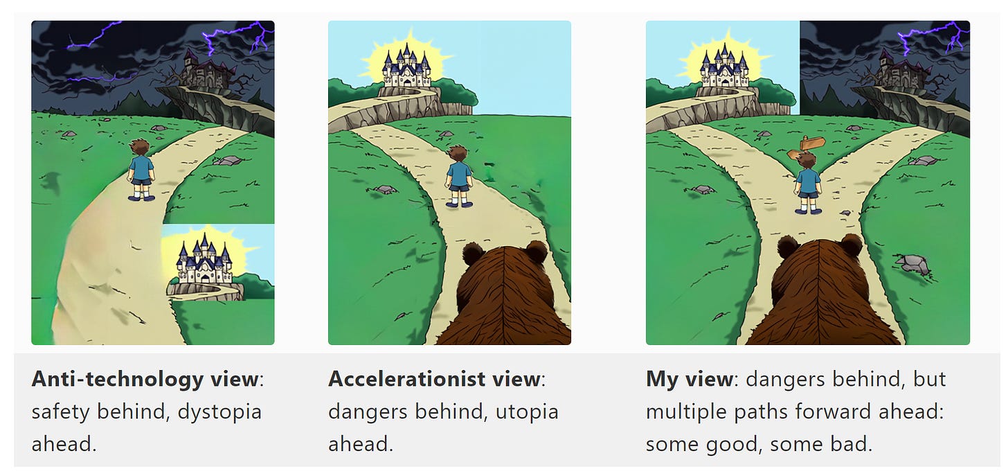 Planning life in this kind of world feels odd — it's a paralyzing anticipation of big changes to come. Which can lead to utopia or extinction, as Vitalik Buterin pictured: