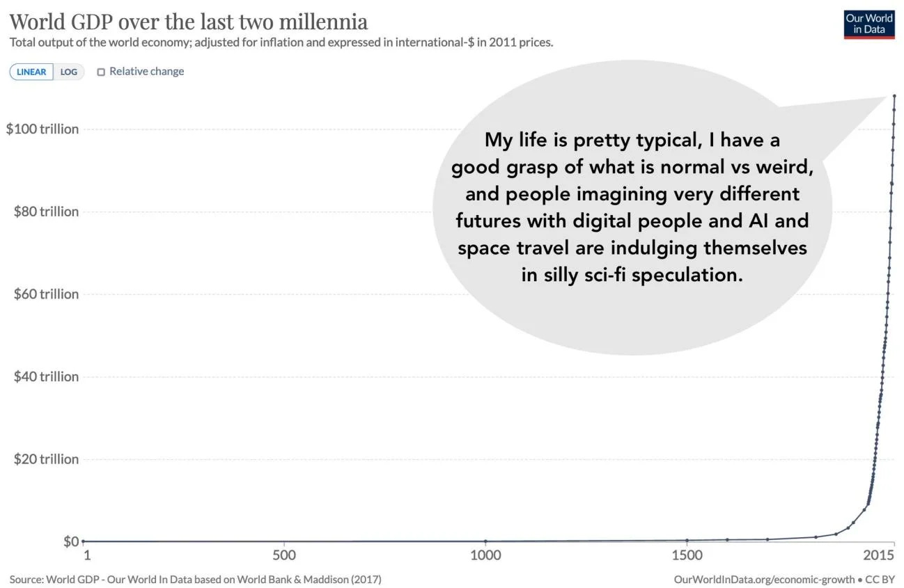"Slow" may not mean what you think it means. It now takes about 16 years for the global economy to double. But the slow scenario suggests that the time it takes to double will fall sharply even before the AGI. First the economy will double in just 4 years, then in just 1 year. And all this before AGI, with real products driving growth! People like Paul Christiano, Robin Hanson and Ray Kurzweil support this idea.