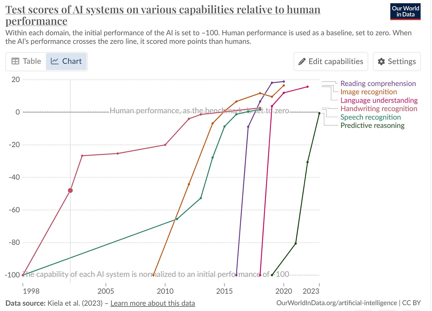 Over the last ten years, we've created Narrow AI systems that can do specific tasks that normally require human intelligence. They can't handle everything at once. But, we've made them to work in different areas one by one. They can now recognize speech, understand images and comprehend reading and language. And they can do all this just as well as humans:
