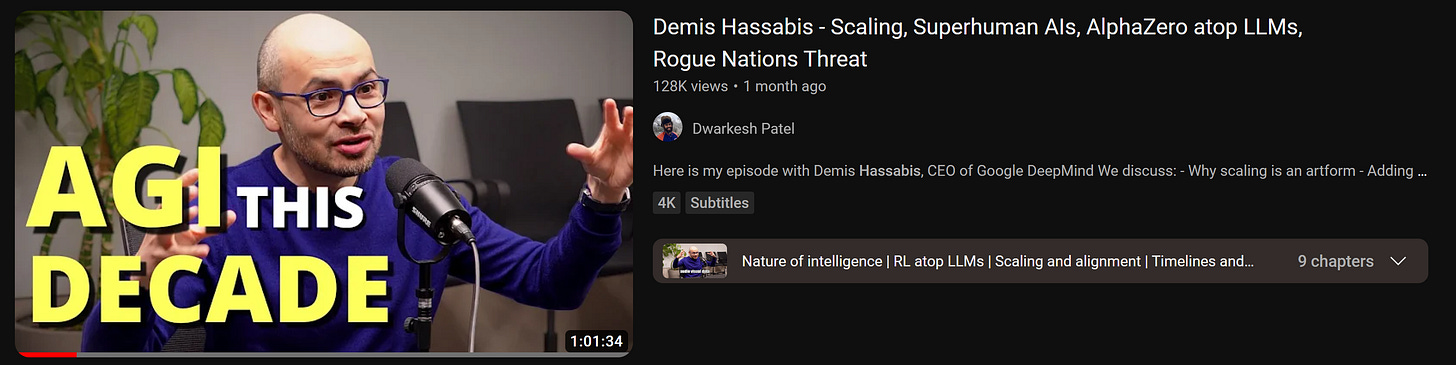 Sounds difficult. As Demis said — AI needs more capabilities to capture this value: planning, search, memory, reliability, and so on.