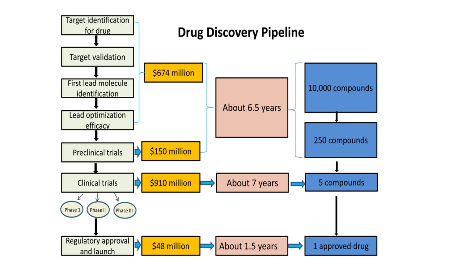 It usually takes around 15 years of research, testing, and regulatory compliance to bring a new drug to market. Plus an investment of over $1 billion. It's a long and expensive journey with lots of manual wet-lab work and significant scientific risks.