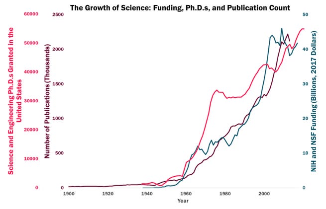The cost of science has risen over the last 50 years and we're seeing fewer and fewer breakthroughs because new discoveries are increasingly difficult to find. Today, researchers must have deeper knowledge and work with larger teams to make progress. It seems we need the help of an AI Scientist to unlock the tech of the future, such as preventive medicine to eventually grow our economy tenfold: