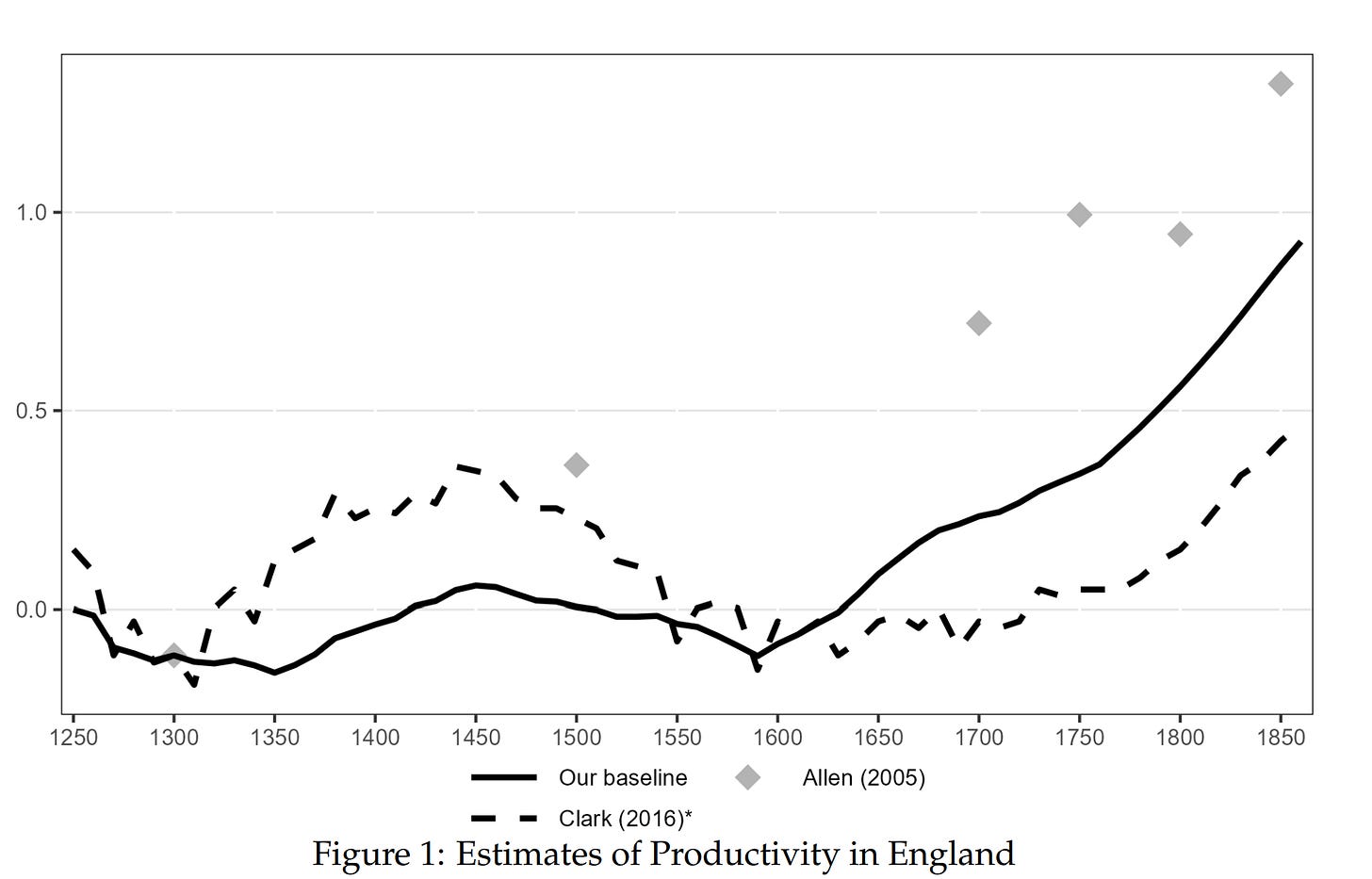 We are at the start of a new curve-bending period — the Intelligence Revolution. Once again, there seems to be a division between what was before and what will come after. Luke mentions in his article that a major reason for the rapid growth during the Industrial era was a significant rise in productivity. Check out this interesting chart from a 2023 study by Paul Bouscasse, Emi Nakamura and Jon Steinsson. It illustrates the changes in England during the Industrial Revolution:
